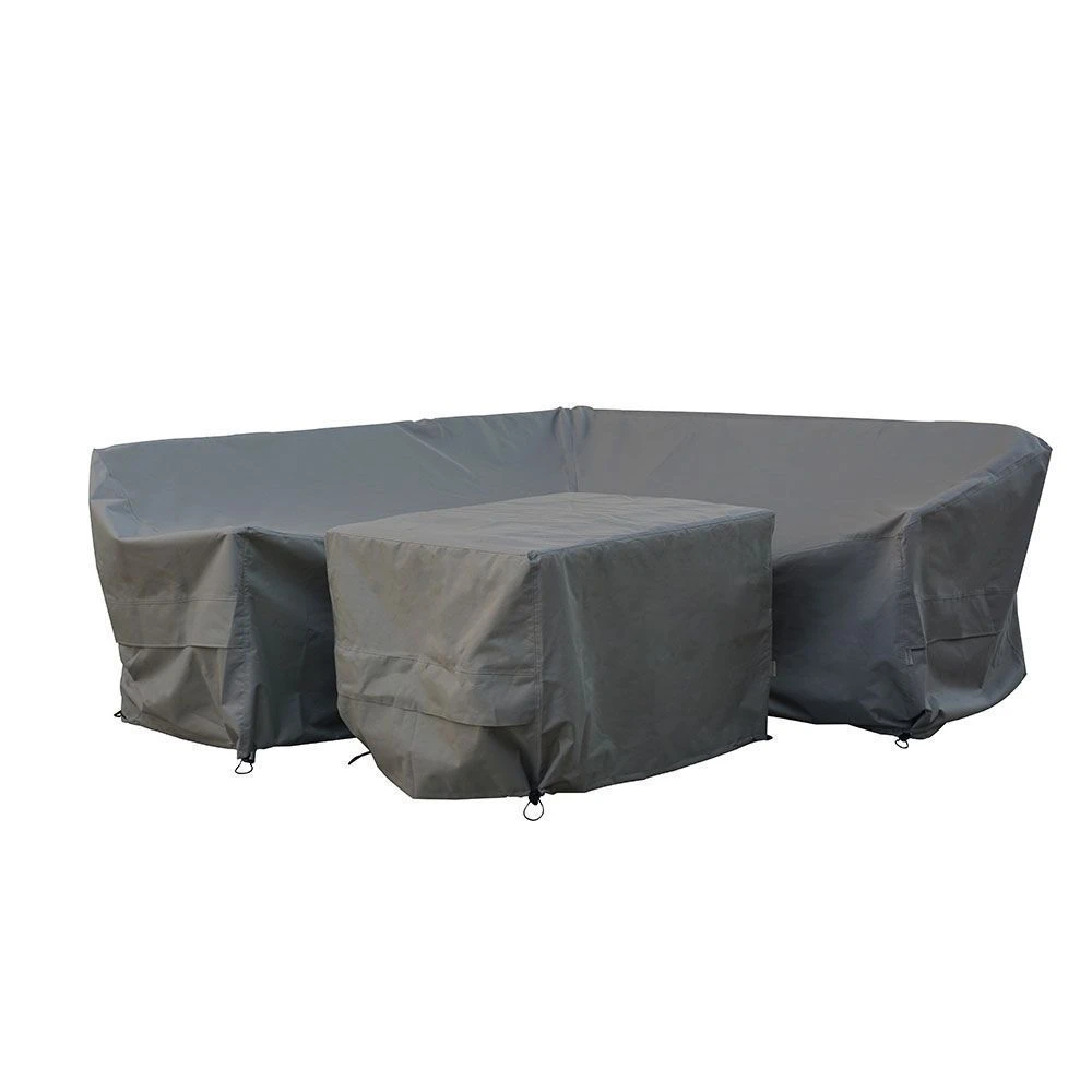 Protect your garden furniture and the prolong its life with the Mini Square Corner Sofa with 2 Stools Furniture Cover. Made from a durable and tear resistant Ripstop fabric material, this cover has a Weathersure water repellent coating and waterproof seams, helping you to save your furniture from the rain. The mesh air vents help to prevent trapped moisture so that mould is less likely to affect your garden furniture. This UV resistant cover can be fitted easily onto your furniture and can be secured using heavy duty fastenings and a drawstring cord lock, helping to further protect your furniture from dirt and debris. When you are using your furniture, it is best to store your cover away ready for the next use within the drawstring storage bag included. This furniture cover is compatible with the following sets: All Mini Modular sets with 2 stools from the Blenheim, Chatsworth, Chedworth, Monterey and Monte Carlo ranges as well as related dual height table sets.