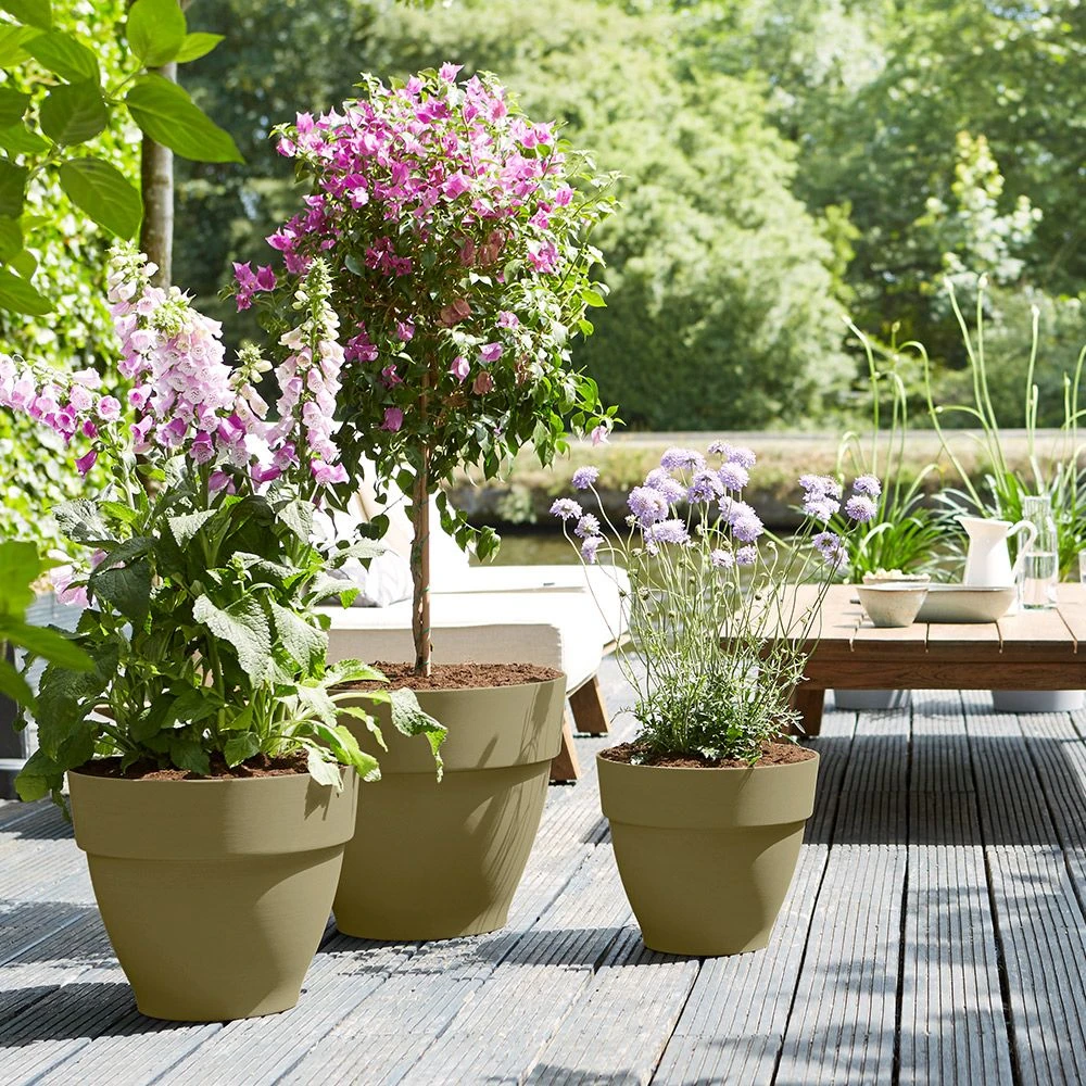 The elho Vibia Campana Round in Sage Green is a great option for those who want to ensure their plants are comfortable on your patio. This round flowerpot has a rough natural texture and is frost resistant, perfect for handling unseasonable weather. The fact that it’s made with recycled plastic using wind powered energy and is 100% recyclable is a nice touch for those who are environmentally conscious.