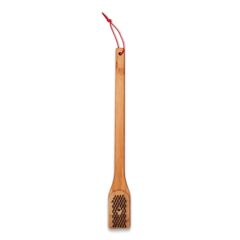 Clean your BBQ to perfection with the Weber Bamboo Grill Brush. This metal bristled brush is useful for removing stubborn burnt on food and allows you to brush thoroughly between the cooking grates of your BBQ. The bristles on this brush are tough however they will not scratch porcelain enamel on Weber BBQs. To clean effectively, clean the BBQ with this brush when hot. Do not leave brush on BBQ.